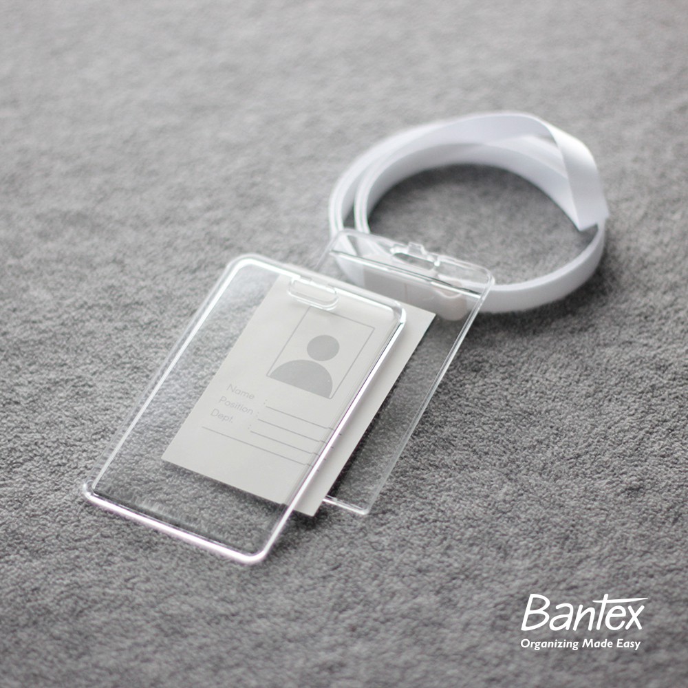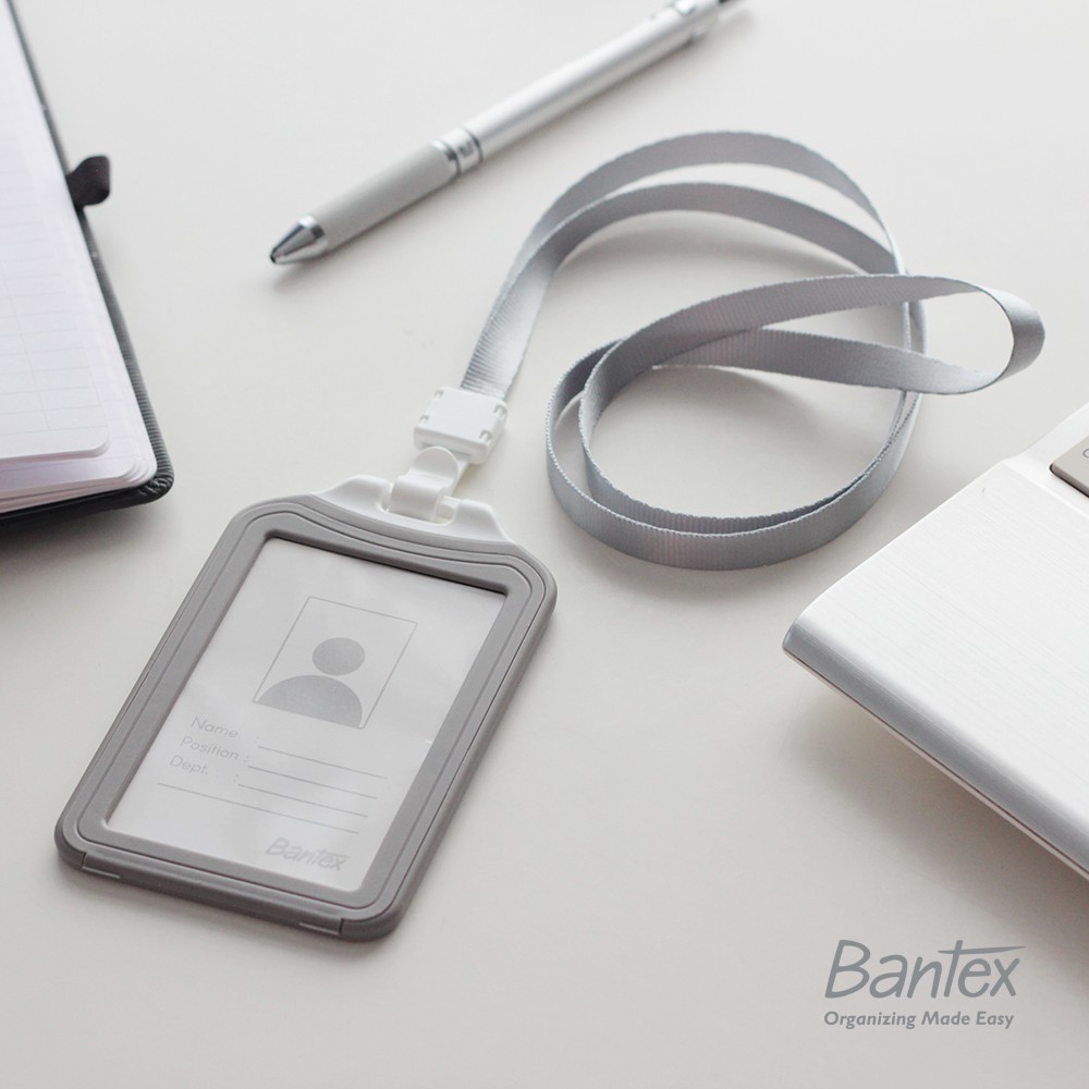 Bantex Leather Name Tag ID Card Holder Button Kulit Sintetis Lanyard Tali Grey - 8883 05 |