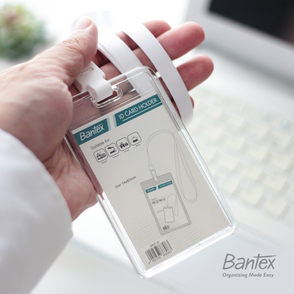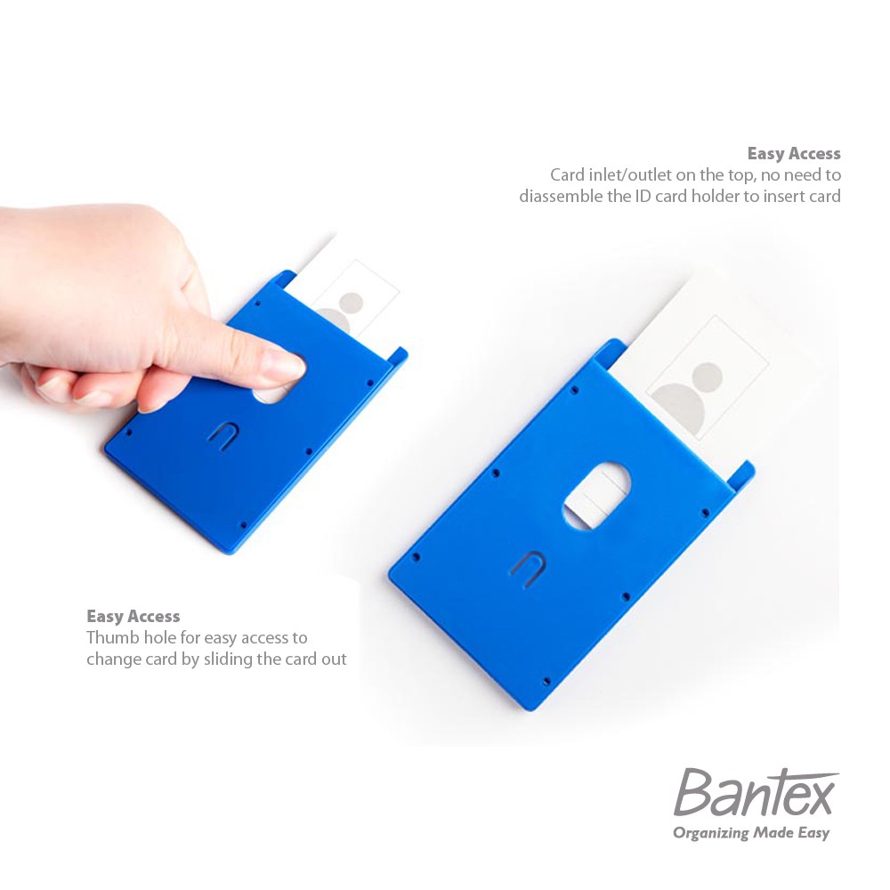 Bantex Leather Name Tag ID Card Holder Button Kulit Sintetis Lanyard Tali Blue - 8883 01 |