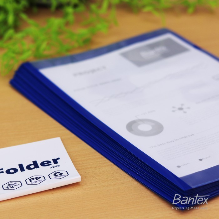 Bantex 12 Pcs Map L Plastik F4 / Map Bening / L Folder BiColour - 2256 1108 - Cobalt Blue & Transparent |